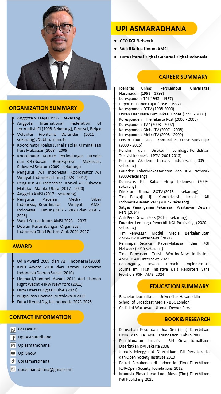 CEO KGI Network, Wakil Ketua Umum AMSI, Duta Lliterasi Generasi Digital Indonesia